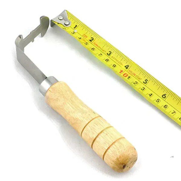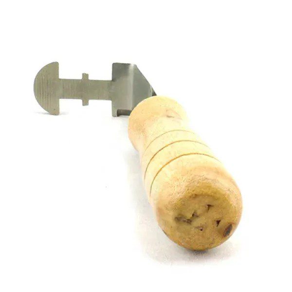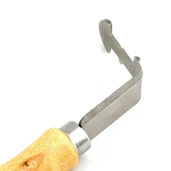 Pčelarski nož za čišenje ramova, ima drvenu dršku i čelični deo zakrivljen pod uglom od 90 stepeni, a napravljen je sa namenom da olakša čišćenje ramova od voska i propolisa. Ukupna dužina noža je 180mm. Njegova oštra ivica na ravnom delu (delu koji se nastavlja nakon drške) idealan je za čišćenje ramova od voska i propolisa. Zakrivljeni deo noža ima dvojaku funkciju, olakšava vađenje prvog rama iz nastavka i omogućuje čišćenje kanala na satonoši rama.